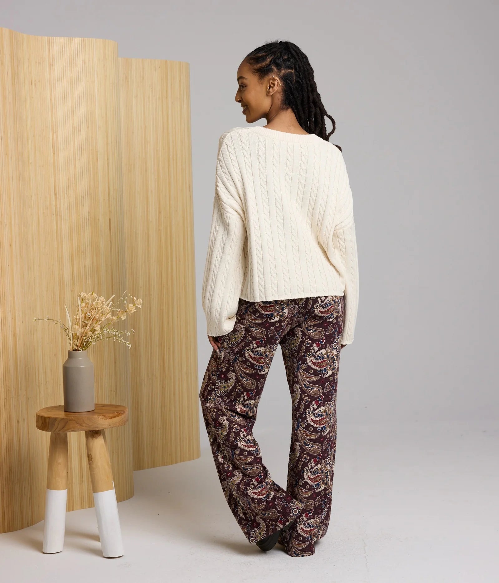 With its boxy fit and oversized v-neck the Bizzy Sweater is a fun & fashionable take on your traditional cable-knit sweater.